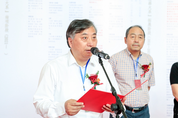浙江大学党委书记任少波,湖州市人大常委会党组书记、主任孙贤龙,湖州市人民政府副市长闵云,浙江大学党委副书记邬小撑,浙江省文物局副局长曹鸿,全国师范院校图书馆联盟理事长、北京师范大学图书馆馆长王琼,浙江省书法家协会名誉主席、原浙江省文化厅副厅长、浙江省文物局原局长鲍贤伦,浙江自然博物馆原馆长康熙民,我校党委书记金佩华、党委副书记陈永华、副校长舒志定出席了开幕式。浙江大学党委宣传部、艺术与考古学院、图书馆相关负责人,湖州市委宣传部、市文化广电旅游局、市文联相关负责人,湖州市各县区图书馆馆长以及莅临我校参加“2021年全国师范院校图书馆联盟理事会议”的各图书馆负责人,我校办公室、宣传部、图书馆相关负责人以及艺术学院师生代表100余人参加了开幕式。开幕式由金佩华主持。