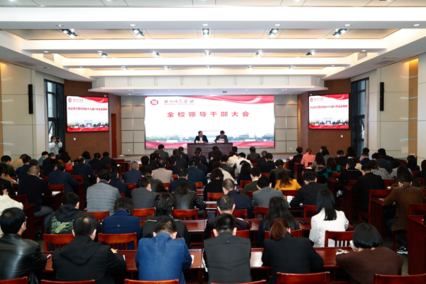 11月18日下午,我校召开全校领导干部会议,传达学习贯彻党的十九届六中全会和省市领导干部会议精神。会议由校党委书记金佩华主持。