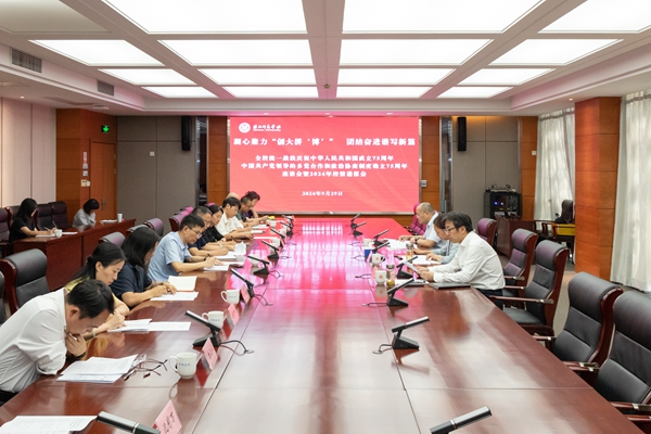 9月29日下午,全校统一战线庆祝中华人民共和国成立75周年、中国共产党领导的多党合作和政治协商制度确立75周年座谈会暨2024年校情通报会在明达楼221会议室举行。校党委书记许慧霞出席会议并讲话,副校长(主持行政工作)盛况出席会议并作2024年校情通报。校党委委员,组织部、统战部部长劳士健主持会议。学校各民主党派、统战团体负责人,部分省市人大代表、政协委员,无党派人士、党外知识分子代表等参加会议。