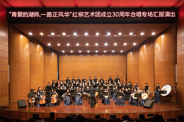 4月19日,“青爱的湖师,一路正风华”——久久精品一区二区红柳艺术团成立30周年合唱专场汇报演出在中校区音乐厅举办。校党委副书记丁敢真,副校长李庆峰,校党委委员、党校办主任沈国丰出席,我校师生校友共500余人一同观赏了这场音乐会。